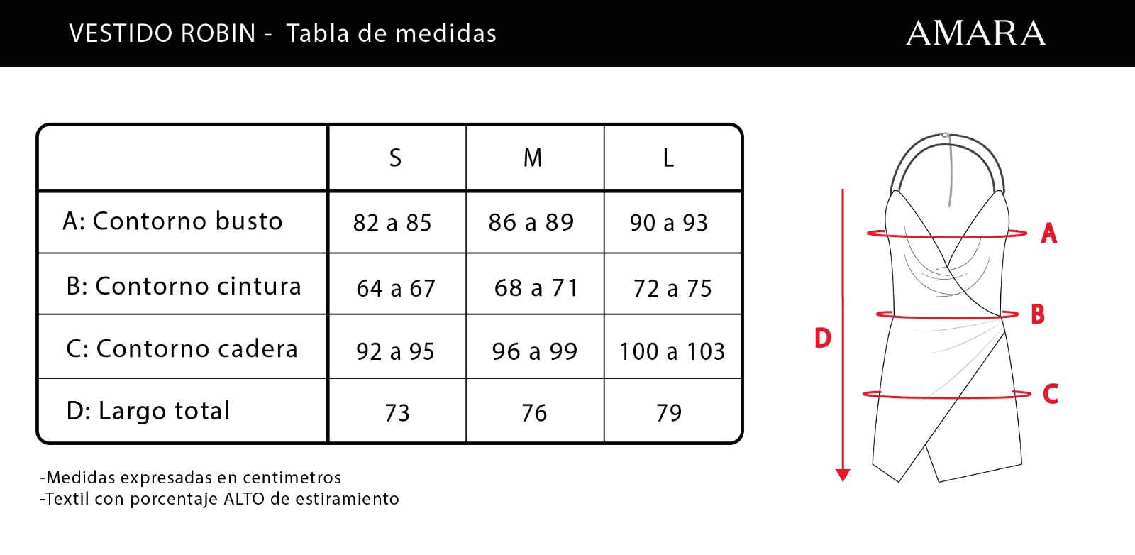 Se ajusta a la talla real. Diseñado para un calce ceñido en forrería y más holgado en el vestido principal. Su bretel regulable permite ajustar el vestido a cada usuaria. El largo total del vestido en plano desde el escote al ruedo es de 73cm para el Talle S; por talle aumenta 3cm. La modelo lleva un talle S.