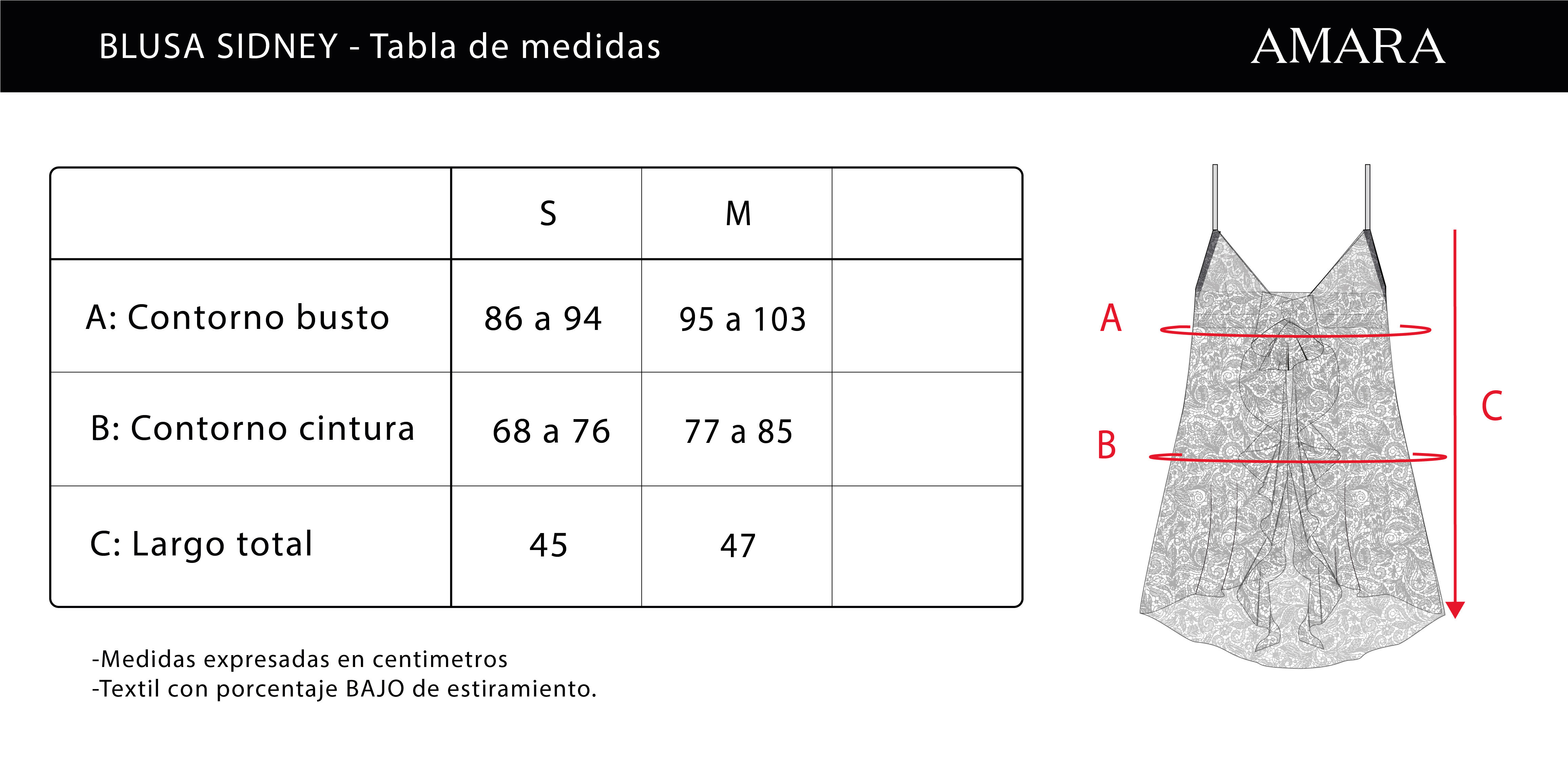Blusa larga irregular en guipiur, lleva un corpiño en jersey crepé elastizado como base que sostiene el guipiur. El mismo se accede por el delantero y sus breteles como el bajo busto es regulable.