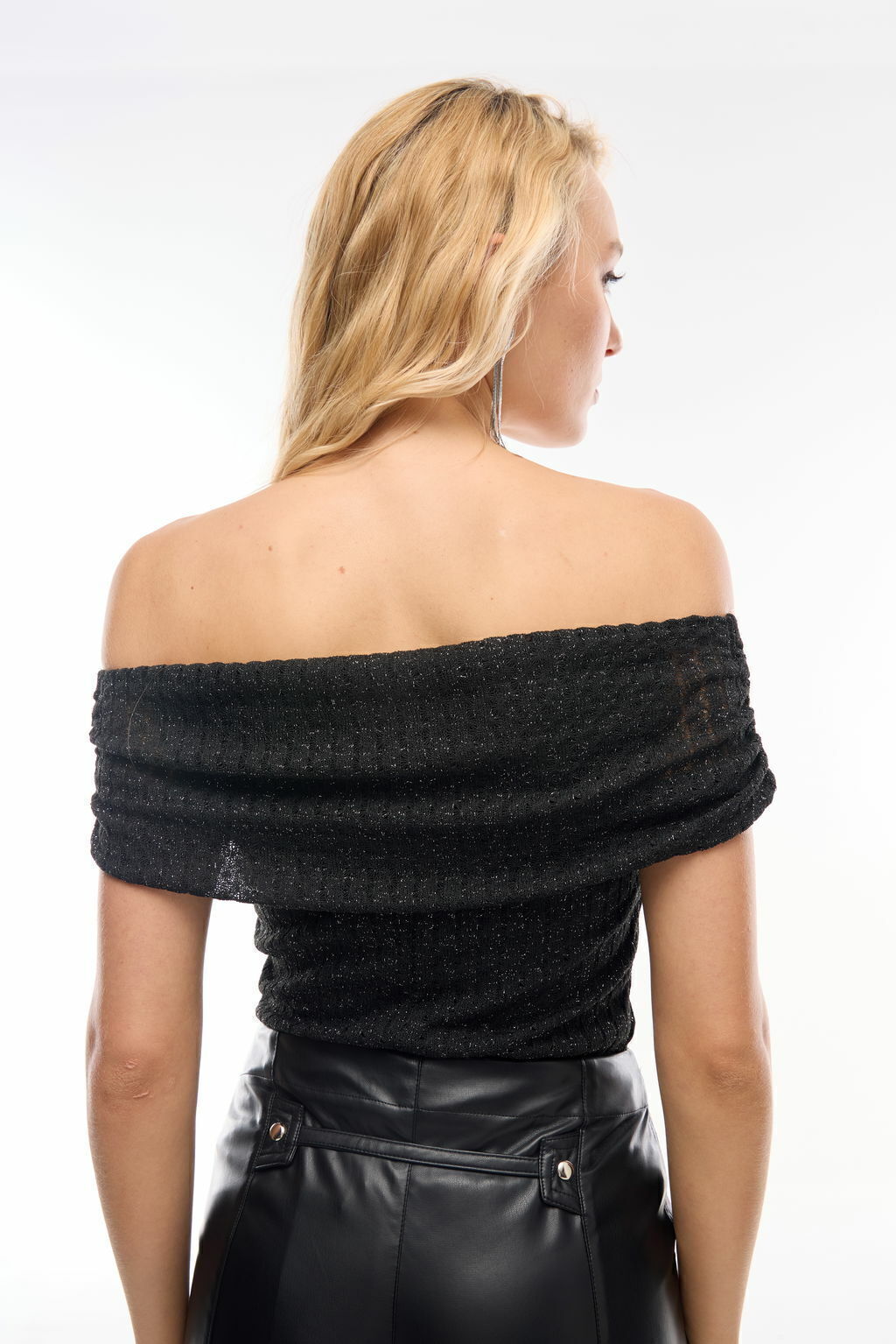 Top sin mangas con escote bote. Está totalmente forrado menos. Lleva un elástico interno para sostener el calce.