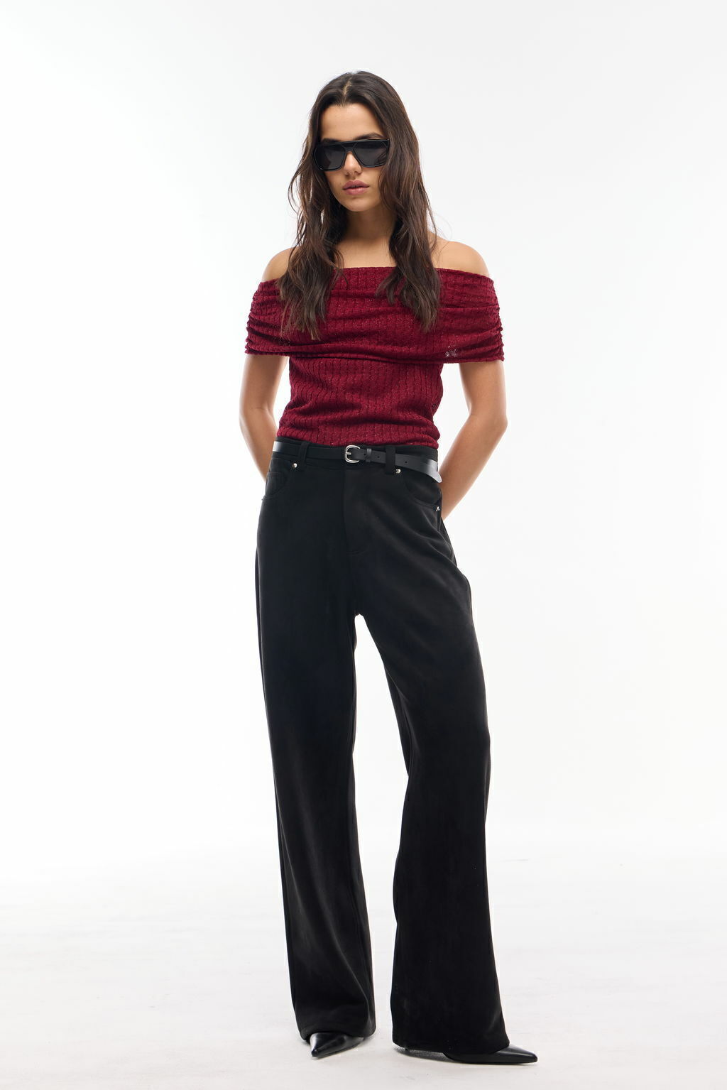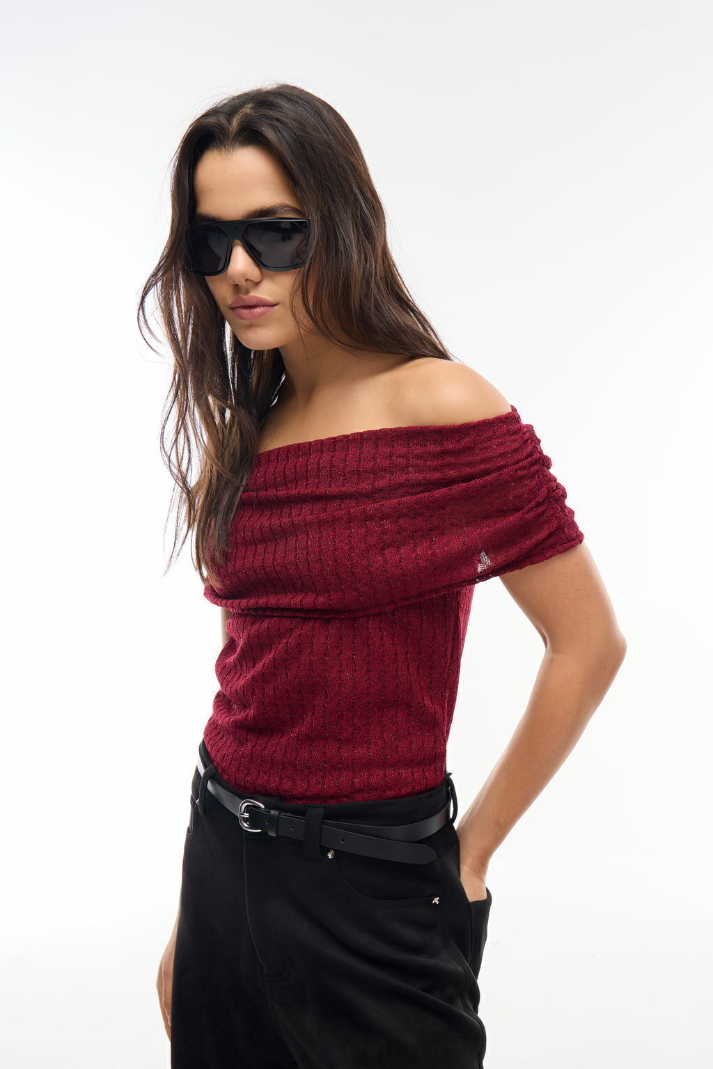 Top sin mangas con escote bote. Está totalmente forrado menos. Lleva un elástico interno para sostener el calce.