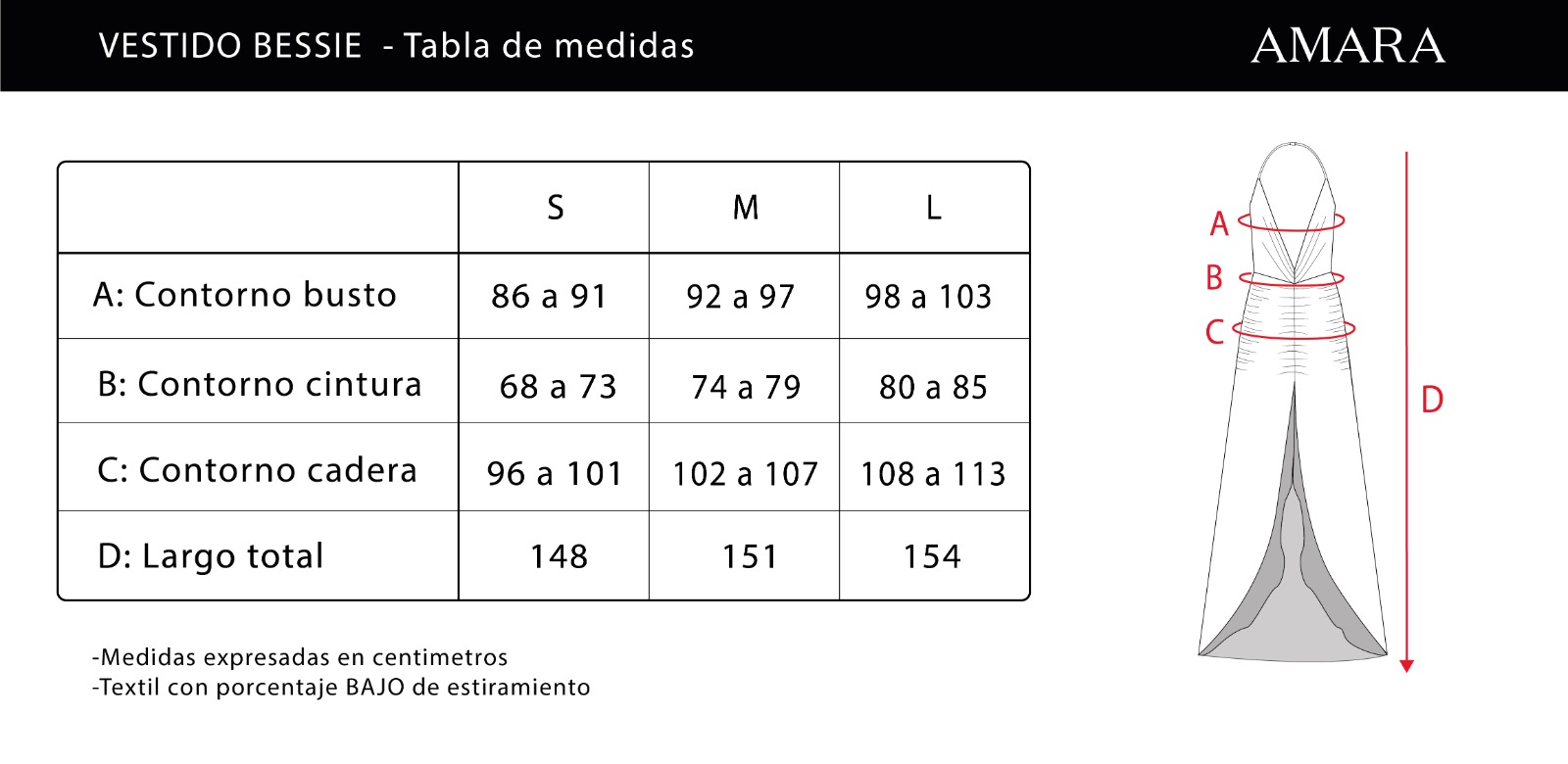 El vestido acompaña la figura del cuerpo y tiene un falda mas ajustada en la zona de cadera con un tajo en el centro delantero.