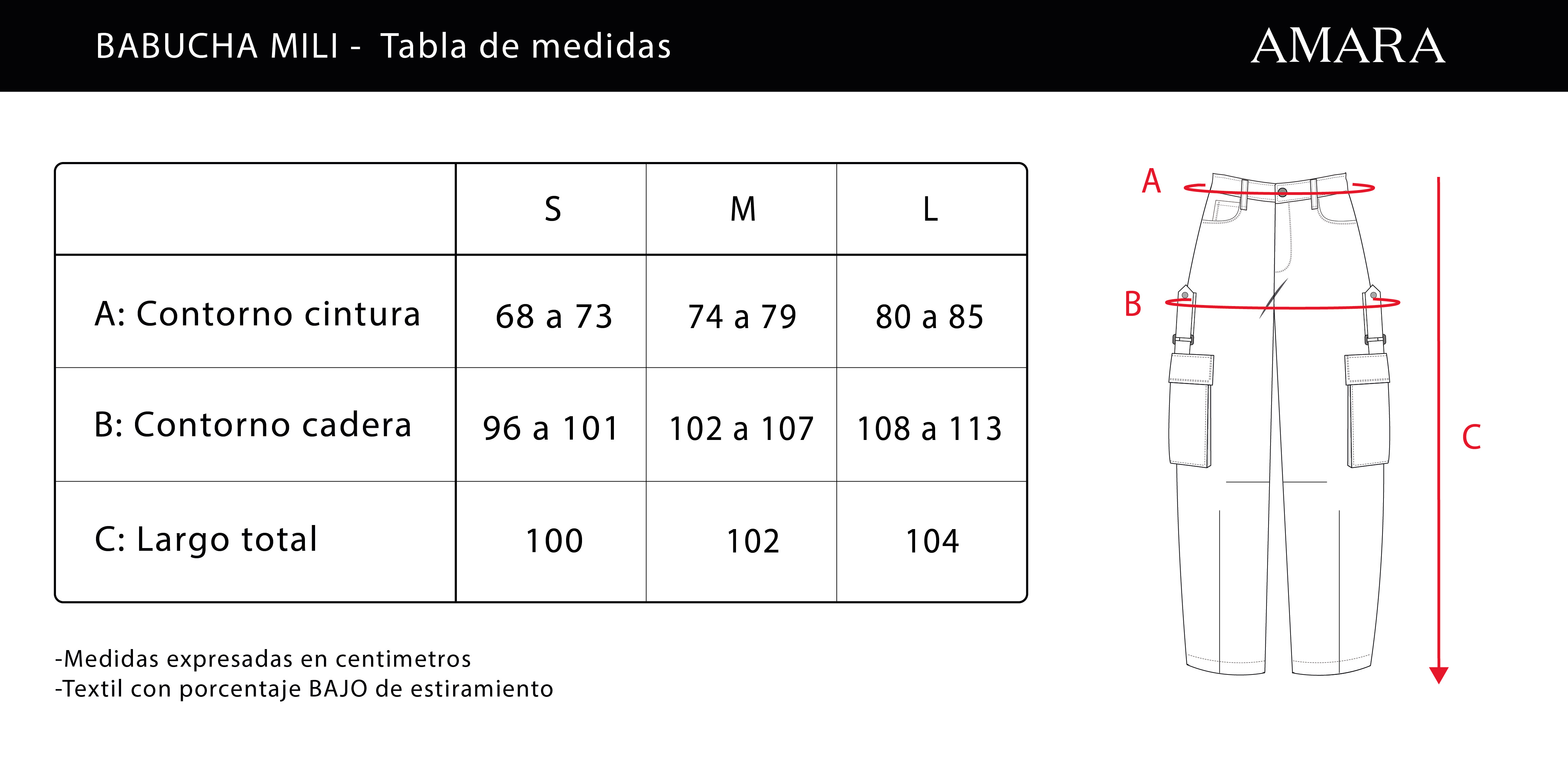 Diseñado para un calce holgado, cintura tiro medio. Para lograr un tiro bajo, se recomienda escoger un talle más. Piernas con soltura, levemente ceñidas en la botamanga.
